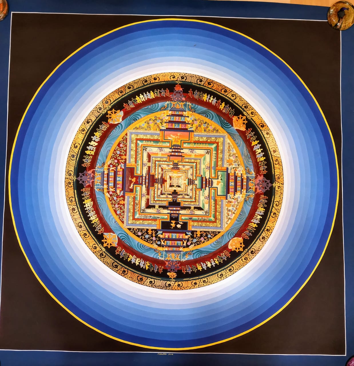 kalachakra mandala with louts flower ( sand mandala) : 70×70